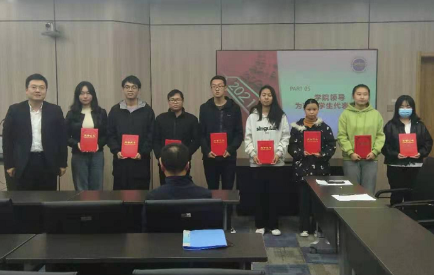 2021年度本科生实习、见习工作表彰决定》,对2018级梁思伟等52名同学、2019级吕航等52名同学及倪楠、李小斐、吕莎、张兴浩4名指导教师进行表彰。随后,学院领导为获奖的老师和同学颁奖。