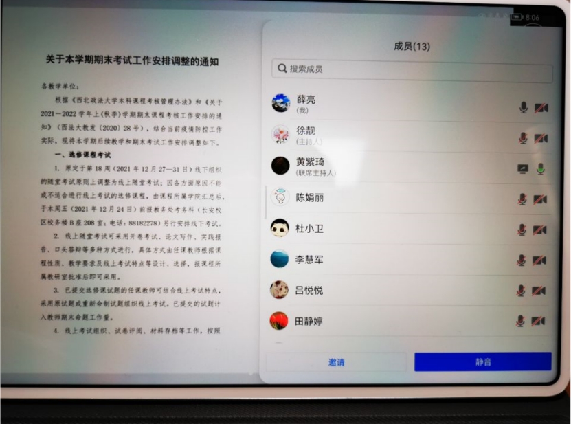 因疫情防控需要,自2021年12月22日下午4点接到教务处下发的《关于本学期期末考试工作安排调整的通知》后,院教务办即于当晚组织召开了线上考务安排会,学院党委副书记李慧军、各教研室主任、各年级辅导员、教务办干部共同参加了本次会议,会议由薛亮副院长主持。会上对考试中可能存在的问题进行了讨论并提出了解决方案。会后,教务办制定了《期末考试工作方案》、《线上期末考试工作预案》、《选修课期末考试工作台账》等文件,并制作了《线上选修课考试评分样表》、《期末考试答题纸(模板)》等附件材料以便老师考核使用。此外,教务办建立了覆盖所有选修课任课教师的考试工作群,并将《选修课期末考试工作台账》通知相关学院以保障考试信息对学生通知到位。李慧军副书记协调辅导员老师向参加考试的同学强调了考试纪律。