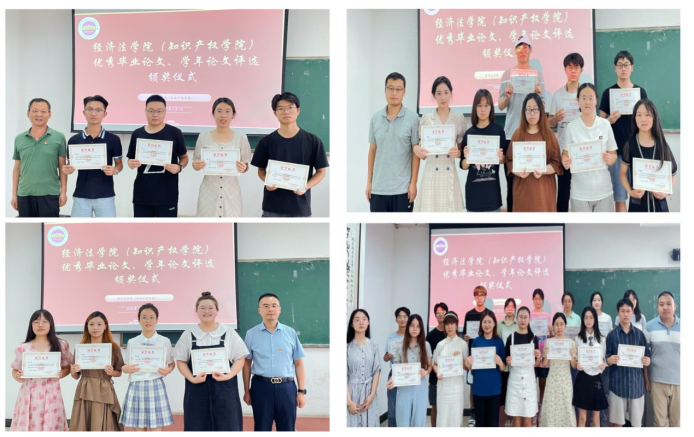 会议第三项,学院党委副书记李慧军、副院长薛亮、院团委书记王文以及辅导员李冬冬、张兴浩、吕悦等老师为获得优秀毕业论文、学年论文的同学颁发荣誉证书及奖品。鼓励同学们重视提升学术思想表达水平,在专业写作过程中不断探索、勤于钻研。