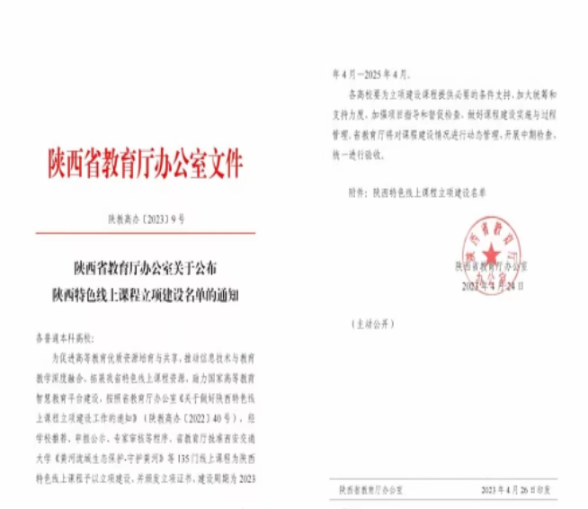 此次陕西特色线上课程立项工作是陕西省大力推进高等教育数字化转型的重要举措,课程建设周期为2年,建设完成并通过验收的课程将自动认定为省级一流课程。我校将以本次课程立项为抓手,进一步丰富特色线上课程资源,推进信息技术与课程的深度融合,全面提升课程建设水平和人才培养质量。