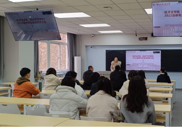 于3月1日中午在雁塔校区三号教学楼召开2022级研究生实训动员大会。学院副院长肖新喜教授、党委副书记李恒、教务办秘书徐靓及2022级全体研究生参会。研究生辅导员吕悦主持会议。
