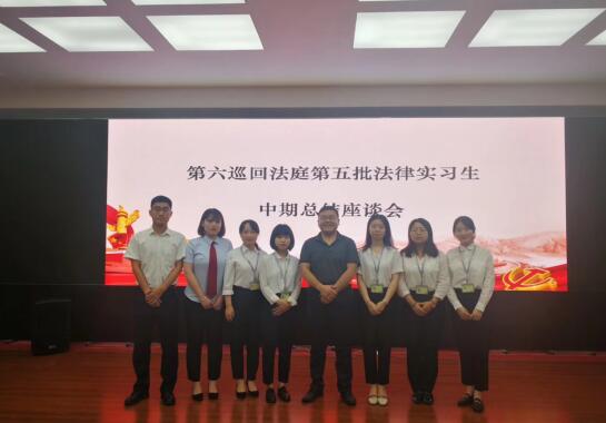 2019年6月19日下午,色情电影 团委书记王文老师应邀与校研究生院副院长杨华老师等参加最高人民法院第六巡回法庭召开的第五批法律实习生中期总结座谈会。