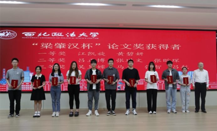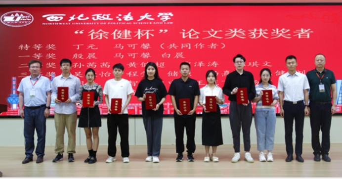 我校高等教育研究所副所长邱昭继宣读第五届“梁肇汉”杯优秀论文大赛、第三届“徐健杯”长安优秀法学作品大赛表彰决定。与会领导分别为获奖学生颁发荣誉证书。