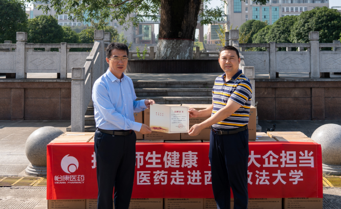 西安怡康医药连锁有限责任公司本次向我校捐赠了抗原检测试剂20000人次,价值78000元。张军政代表学校接受捐赠,并为西安怡康医药连锁有限责任公司颁发捐赠证书。