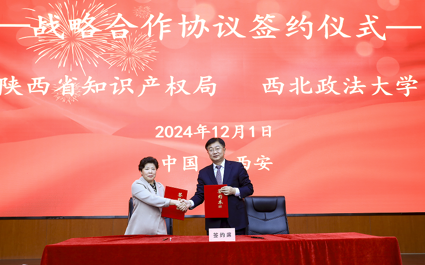 战略合作协议》签约仪式,双方将联合建设“陕西知识产权法治研究院”,共同打造知识产权高水平研究平台。