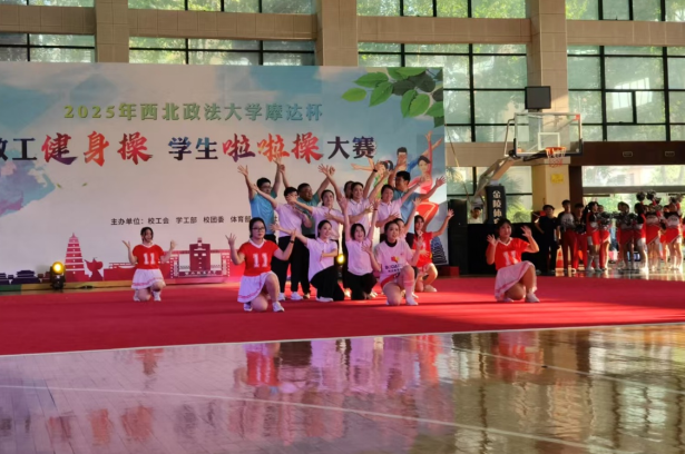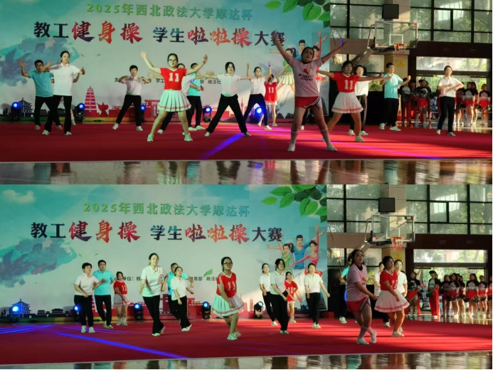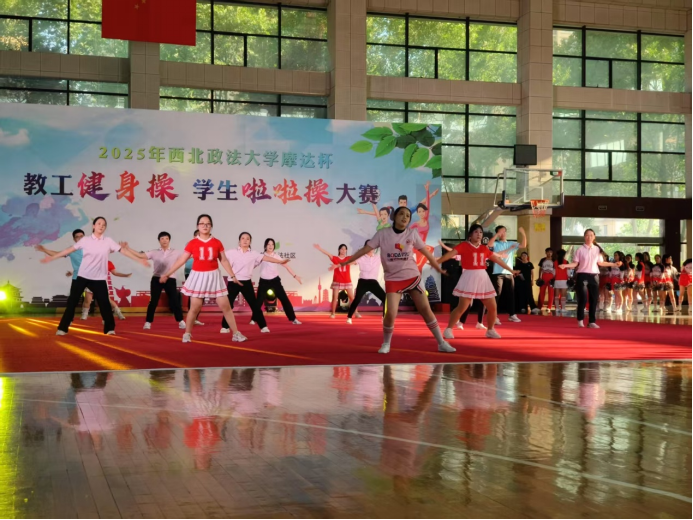 教职工团队于5月29日在学校体育馆举行的健身操比赛中闪亮登场,以充满活力的舞姿与昂扬的热情,为现场观众带来一场精彩绝伦的视觉盛宴。