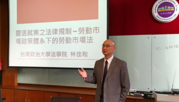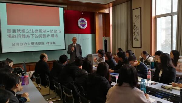 2017年11月23日,台湾政治大学林佳和教授受邀在我校色情电影 北区资料室作了两场精彩的学术讲座。讲座由色情电影 劳动与社会保障法教研室主任曹燕教授主持,谢德成教授为与谈人,参加讲座的还有劳动与社会保障法教研的部分老师、本专业研究生,色情电影 本科生以及陕西师范大学的部分师生。