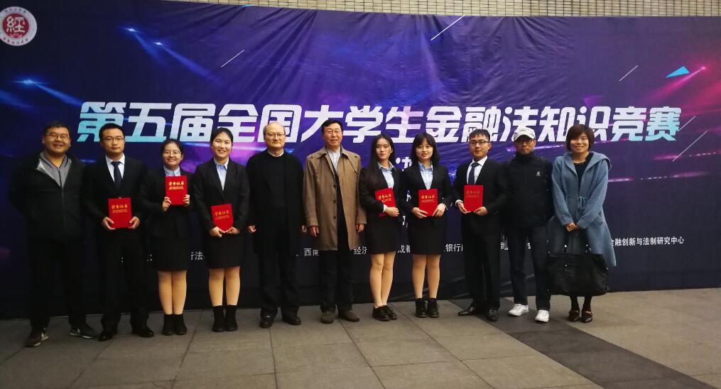 2018年11月16日,第五届全国大学生金融法知识竞赛在西南政法大学渝北校区举行,我校代表队代表西北赛区参加本次全国总决赛,经过激烈地角逐,我校代表队荣获全国二等奖。