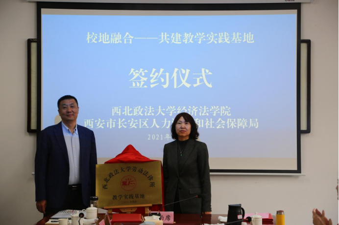《劳动法诊所》教学实践基地、与劳动保障监察大队共建教学实践基地签约暨揭牌仪式于在长安区人力资源和社会保障局隆重举行。