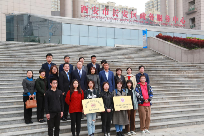 教学实践基地”揭牌。签约暨揭牌仪式结束后,参会人员在长安区政务服务中心门前合影留念。