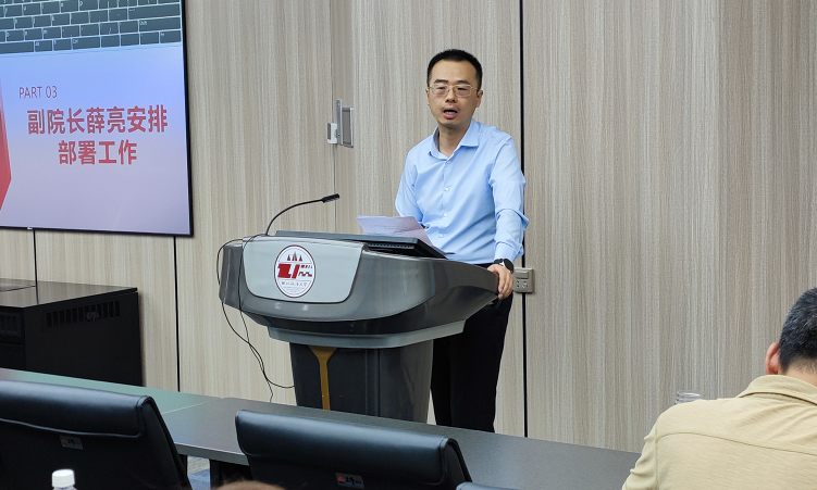 院长倪楠对学院十四五规划进行重点说明并安排了下半年重点工作,要求全院上下紧密团结在学院党委周围,在“十三五”经验基础上全力发展,力争在十四五中期科研达标、形成完善的学科梯队,建立1个国家级平台,3-4个省级平台,1-2门国家级金课,实现省级金课全覆盖。会上,还宣布了关于调整部分教研室及人员的通知。