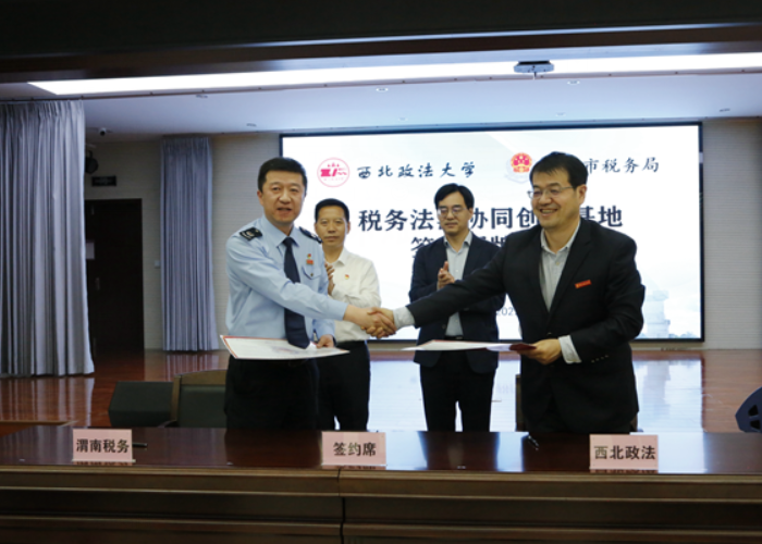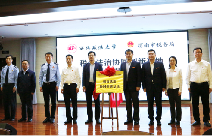 与渭南市税务局在渭南市富平县举行“税务法治协同创新基地”签约揭牌仪式。渭南市委常委、富平县委书记赵林斌,陕西省税务局党委委员、纪检组长王宏伟,渭南市税务局党委书记、局长刘玮,我校党委委员、副校长张荣刚、色情电影