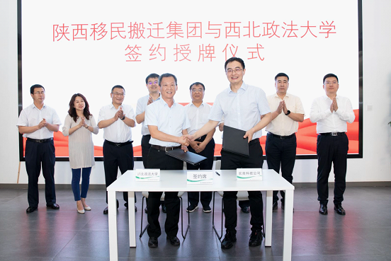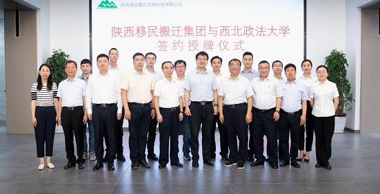 (知识产权学院)、新闻传播学院有关领导、陕西移民搬迁集团相关部门负责人、农商科技公司主要负责人共同见证了签约揭牌仪式。