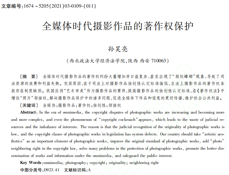 孙昊亮:全媒体时代摄影作品的著作权保护